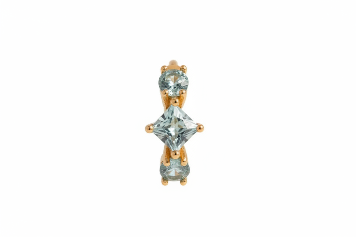 The Clarity - named for the quality both stones share. Aquamarine, the seer's stone worn by oracles and sailors for safe passage and clear vision. Or diamond, pure carbon transformed by pressure into perfect transparency.